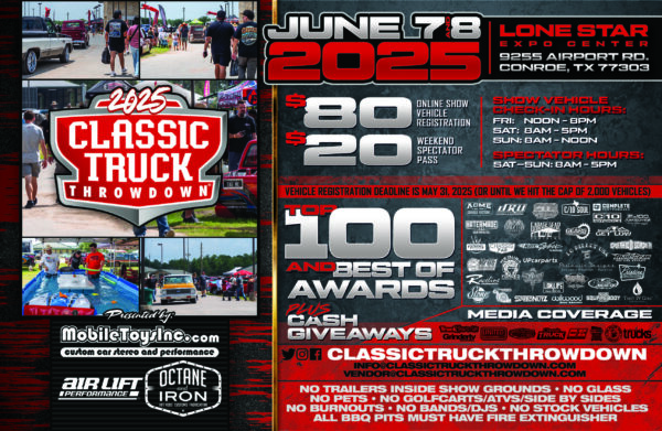 Register for the CTT show, which will be held June 7th-8th, 2025 (Registered vehicles must be 2000 or older.)